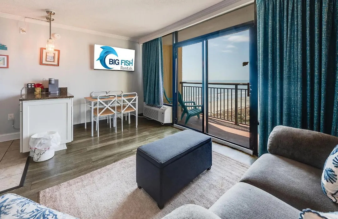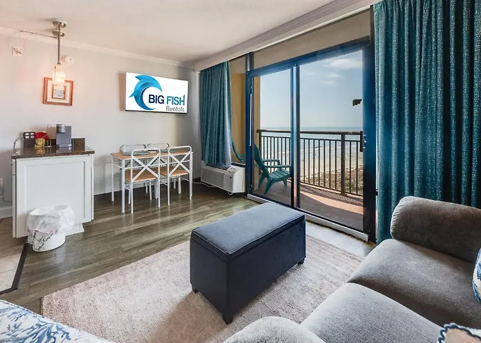 The beachfront New Caravelle Resort 1Br Honeymoon Suite Pools! Myrtle Beach is situated in Myrtle Beach, 7 km from the Captain Hooks Adventure Golf, and offers spa amenities such as a hot tub. This apartment comes with a private swimming pool and a sunbathing terrace overlooking the city.
